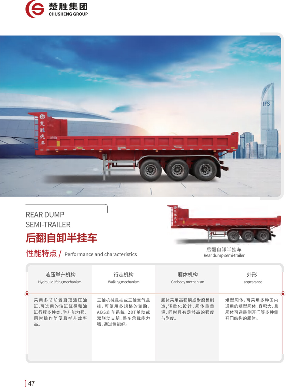 楚胜牌CSC9404Z型自卸半挂车