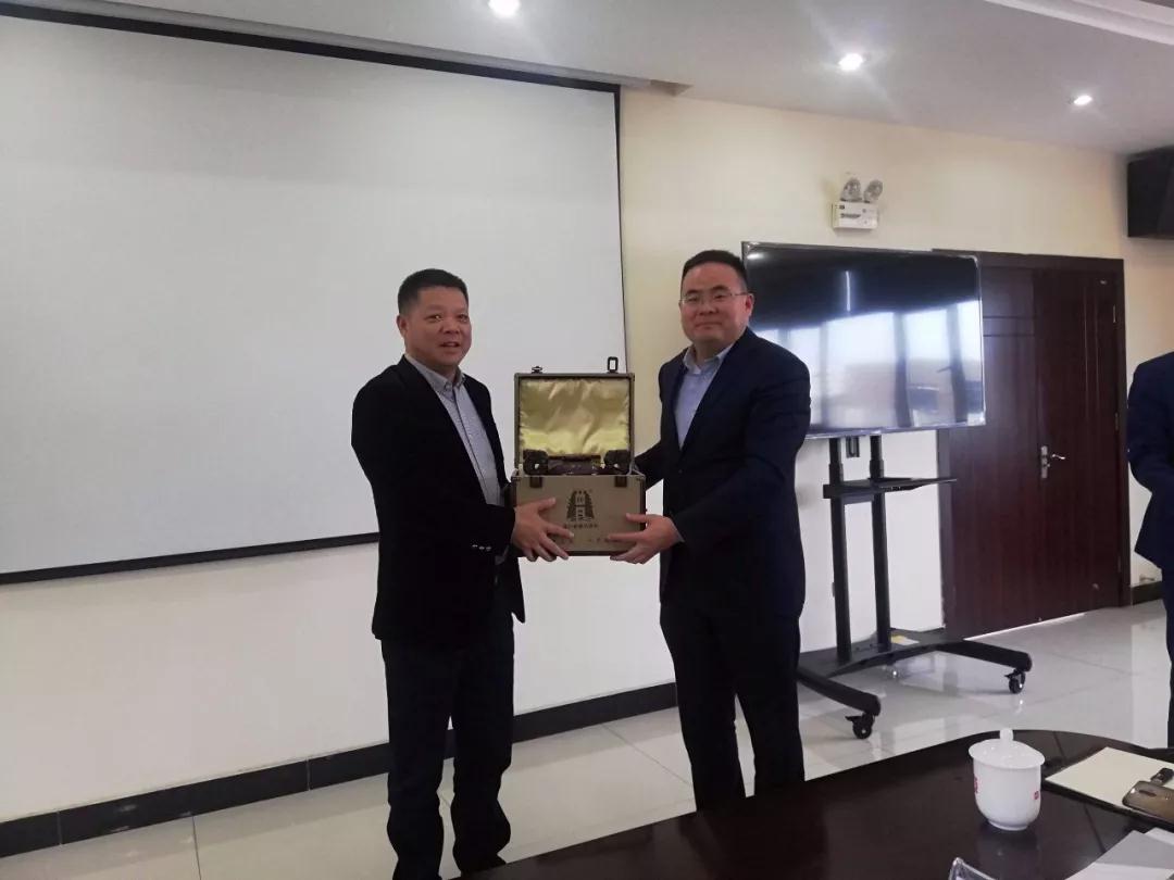 会议结束后,双方高层分别代表企业进行礼品互赠,并合影留念。