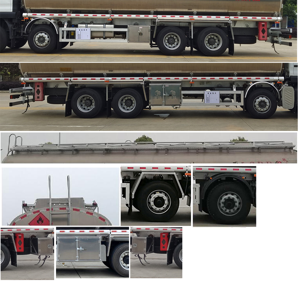 | 其它: | 1、该车适用于危险品运输,运送危险货物车辆类型为:FL型。准运介质最大密度:850千克/立方米,罐体外形尺寸(mm):9000×2250×1500,罐体总容量24.3立方米,罐体有效容积24.2立方米。2、侧防护材料为铝合金,螺栓连接;后防护材料为Q235,螺栓连接,截面尺寸(mm)80×140,下边缘离地高410mm。3、随底盘选装驾驶室,选装顶置空调,选装电瓶、储气筒、尿素罐位置。仅选用排气管前置,前轮盘式制动,限速装置(限速80km/h)及子午线轮胎的底盘。转向轮安装轮胎爆胎应急防护装置。后轴采用空气悬架。安装带有卫星定位功能的行驶记录仪。EBS系统型号/生产厂家: EBS3/采埃孚商用车系统(青岛)有限公司。发动机与油耗值(L/100Km)对应关系为:MC07.31-60/38.03,MC07.33-60/38.03,MC07.34-60/38.03,WP8.350E61/38.04,MC07H.29-60/35.15,MC07H.33-60/35.15,MC07H.35-60/35.15,WP7.300E61/36.25。选装ETC。罐体上部选装上走道,左右侧后部选装工具箱,选装左侧工具箱样式。第二轴选装弧形胶制挡泥板或方形挡泥板。仅采用1800+4575+1400mm轴距。 | ||