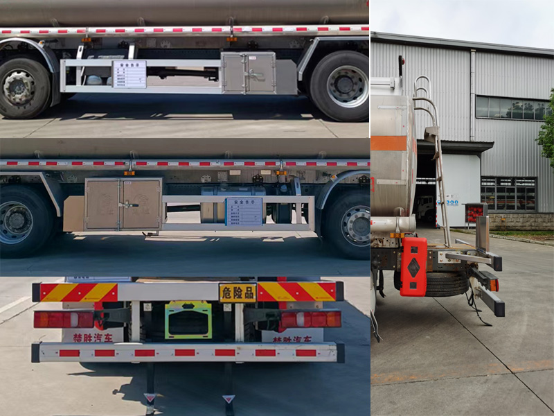 | 其它: | 1、该车适用于危险品运输,运送危险货物车辆类型为:FL型。准运介质最大密度:700千克/立方米,罐体总容量23.9立方米,罐体有效容积23.3立方米,罐体外形尺寸(长×宽×高)(mm):7500×2400×1650。仅采用轴距(mm):1800+4200,1800+4400,1800+5000。2、侧防护材料为铝合金,螺栓连接;后防护材料为Q235,螺栓连接,截面尺寸(mm)80×140,下边缘离地高480mm。3、仅选用排气管前置、限速装置(限速80km/h)、前轮盘式制动及子午线轮胎的底盘,转向轮安装轮胎爆胎应急防护装置,后轴采用空气悬架。安装带有卫星定位功能的行驶记录仪。EBS型号/生产厂家:EBS3/威伯科(上海)管理有限公司.发动机/油耗值(L/100km)对应关系为:MC07.25-60/32.43,MC07.27-60/32.43,MC07.31-60/32.43,MC07H.35-60/32.45,WP7H220E62/32.15,WP7H245E62/32.15,WP7H270E62/32.15,WP7H300E62/32.60,WP7H320E62/32.60。4、选装ETC。随底盘选装驾驶室及前保险杠,选装前后部组合灯具。罐体上部选装上走道,第二轴选装弧形胶制挡泥板或方形挡泥板,选装左右侧后部工具箱及左侧工具箱样式,选装铁制灭火器筒。 | ||