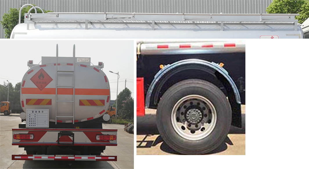 | 配置 | 1、该车适用于危险品运输,运送危险货物车辆类型为:FL型,类项号:3。罐体有效容积:14.3立方米,运输介质:汽油,密度:700千克/立方米,罐体外形尺寸(长×宽×高)(mm):5700×2150×1480。2、侧、后防护材料均为Q235,螺栓连接。后防护截面尺寸120×60mm,下边缘离地高500mm。罐体上部选装上走道;选装后部尾灯架样式;选装弧形挡泥板。3、仅采用4700mm的轴距。仅选用排气管前置、限速装置(限速80km/h)、前轮盘式制动及子午线轮胎的底盘;安装带有卫星定位功能的行驶记录仪;ABS系统型号/生产企业对应关系:ABS-E/威伯科汽车**系统(**)有限公司;ABS/ASR-24V-4S/4M/东科克诺尔商用车制动系统(十堰)有限公司;CM4XL-4S/4M/广州瑞立科密汽车电子股份有限公司;3550D-1010/东科克诺尔商用车制动系统(十堰)有限公司.采用的发动机与油耗值(L/100Km)对应关系为:F4.5NS6B220/24.4,B6.2NS6B210/26。该车转向轮安装轮胎爆胎应急防护装置,后轴采用空气悬架。 | ||