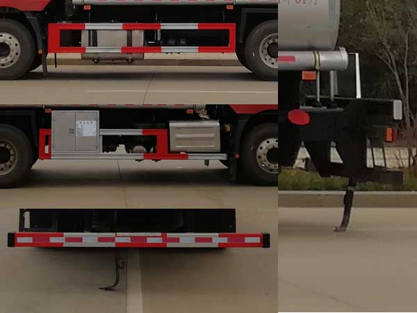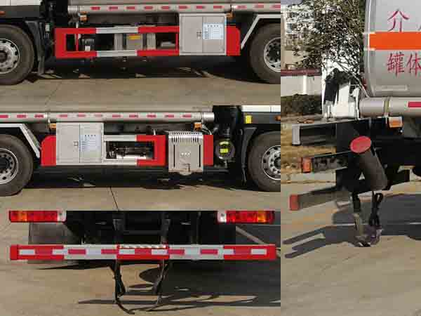 | 配置 | 1、该车适用于危险品运输,运送危险货物车辆类型为:FL型,类项号:3。运输介质:汽油,密度:700千克/立方米。罐体有效容积21.4立方米,罐体外形尺寸(长×宽×高)(mm):7000×2350×1580。2、侧、后防护材料均为Q235,螺栓连接;后防护截面尺寸(宽×高)(mm)60×120,下边缘离地高500mm。3、EBS系统生产厂家及型号分别为:威伯科汽车**系统(**)有限公司(EBS3)。仅选用排气管前置、限速装置(限速79km/h)、前轮盘式制动及子午线轮胎的底盘;安装带有卫星定位功能的行驶记录仪;发动机型号及油耗值(L/100km)为:WP7.270E61/36.79,WP7.300E61/36.79。后轴采用空气悬架。转向轮安装轮胎爆胎应急防护装置。 | ||