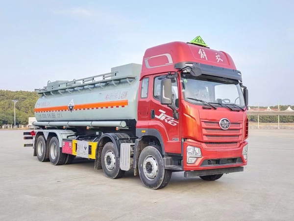 | 其它: | 该车为危险品运输车辆.危险货物运输车辆的车辆类型为AT型车辆.罐体总容量:18.6立方米,罐体有效容积:17.7立方米,准运介质的最大密度1100千克/立方米.罐体外形尺寸(总长×直径)(mm)为8200×1800.侧、后防护装置材质均为Q235B,连接方式均为:螺栓连接;后下部防护装置,断面尺寸(mm):130×50,下边缘离地高500mm.仅选用轴距(mm):1900+3800+1350.发动机与油耗值(L/100km)对应关系为:CA6DK2-35E65/35.60,CA6DLD-29E6/37.75;该底盘排气管前置,安装前盘制动,安装子午线轮胎,随底盘安装限速装置,限速79km/h;安装具有卫星定位的行驶记录仪,安装EBS,EBS系统控制器生产企业/型号为克诺尔制动系统(大连)有限公司/EBS5.该车后轴为采用空气悬架;该车型可选装直接供电ETC车载装置;转向轮安装爆胎应急防护装置. | ||