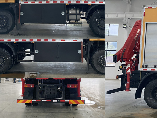 | 其它: | 1、该车主要用于抢险救灾、赛事活动等的应急照明支援;主要专用装置:照明系统,发电机组,吊机等;厢体顶部密闭,不可开启。2、侧防护为裙边结构,材料Q235;后防护材料采用Q235,螺栓连接,截面尺寸125×60mm,下边缘离地高485mm。3、ABS型号/生产厂家:3631010-C2000/东科克诺尔商用车制动系统(十堰)有限公司。 | ||