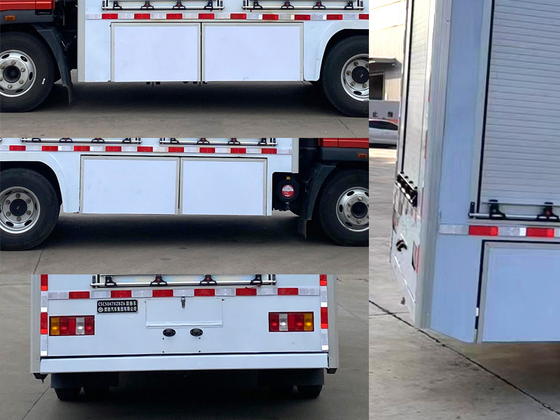 | 其它: | 厢体顶部封闭,不可开启。该车配备专用装备架等专用设备, 主要用于装载警用装备及勘查、抢险救援装备的专用车辆。侧防护由车身结构代替,后防护材料为Q235,焊接,后防护截面尺寸(mm)100×50,下边缘离地高450mm。随底盘选装驾驶室,选装铝合金轮辋。ABS型号/生产企业:XH-KQ4S4M-E01/广州市西合汽车电子装备有限公司,CM4XL-4S/4M/广州瑞立科密汽车电子股份有限公司,VIE ABS-Ⅱ/浙江万安科技股份有限公司。发动机与油耗值对应关系为(L/100km):WP2.3NQ130E61/10.18,D25TCIF1/11.06,WP2.5NQ160E61/10.11,WP2.5NQ150E61/10.11。选装ETC。仅采用轴距3280mm。整备质量包含冷却液、润滑剂、反光背心、三角警告牌、备胎、停车楔、随车工具、专用装备。货厢重量(kg):2160;材质/厚度:底板,碳钢/2mm;侧板,内板铝板/1.2mm,外板碳钢/2mm。 |