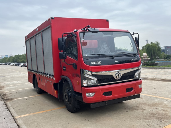 其它:厢体顶部封闭,不可开启.该车配备装备架,主要用于运输应急救援物品或装备.侧防护由车身结构组成,后防护材料为Q235,螺栓连接,截面尺寸(mm):Φ120,下边缘离地高360mm.发动机与油耗值对应关系为(L/100km):CY4SK161/20.4,NV30-C6C/20.3,CY4SK261/20.1,NV30-C6D/20.3,CY4SK361/20.4,NV30-C6G/20.6,D4.0NS6B170/20.5,YCS04190-68/20.3,D4.0NS6B185/20.4,ZD30D16-6N/20.3,D25TCIF1/20.3,D30TCIF1/20.2,D40TCIF1/20.3,D45TCIF1/20.2,YCY30165-60/21.3,H30-165E60/21.0,D4.0NS6B160/20.7,Q28-130E60/20.9,YCY24140-60/21.1,CA4DD2-18E6-30/21.3.ABS型号/厂家:ABS/ASR-24V-4S/4M/襄阳东风隆诚机械有限责任公司.仅采用轴距3800mm.选装限速装置时最高车速为:89km/h.选装直接供电式ETC车载装置.侧面照明灯仅在作业状态下使用,起夜间作业照明作用,行驶过程中不可点亮.
