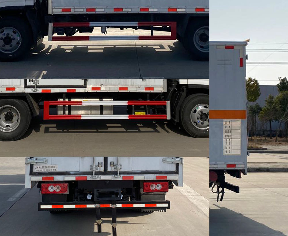 | 配置 | 该车为危险品运输车,运输具有**容器(瓶)包装的物品,运送危险物品类项号:4.1,4.2,4.3。厢体顶部封闭,不可开启。侧后防护材料均为Q235,螺栓连接,后防护截面尺寸(mm)100×50,下边缘离地高450mm。选装后部尾板,选装后部尾板时后防护材料为Q235,螺栓连接,截面尺寸(mm)φ100,下边缘离地高450mm。厢体选装侧开门及位置或无侧门、选装后门双拉杆,厢体选装瓦楞板结构,选装百叶窗。仅选用排气管前置、限速装置(限速80km/h)、前轮盘式制动及子午线轮胎的底盘;转向轮装备轮胎爆胎应急防护装置。安装带有卫星定位功能的行驶记录仪。ABS型号/生产厂家:ABS-E/威伯科汽车**系统(**)有限公司,ABS-VI·E/广州瑞立科密汽车电子股份有限公司,YF8/武汉元丰汽车电控系统有限公司。发动机/油耗值(L/100Km)对应关系为: F2.8NS6B131/11.47,Q28-130E60/11.02。尾板收起状态水平长度为280mm,尾板质量为350kg。选装ETC。 | ||
