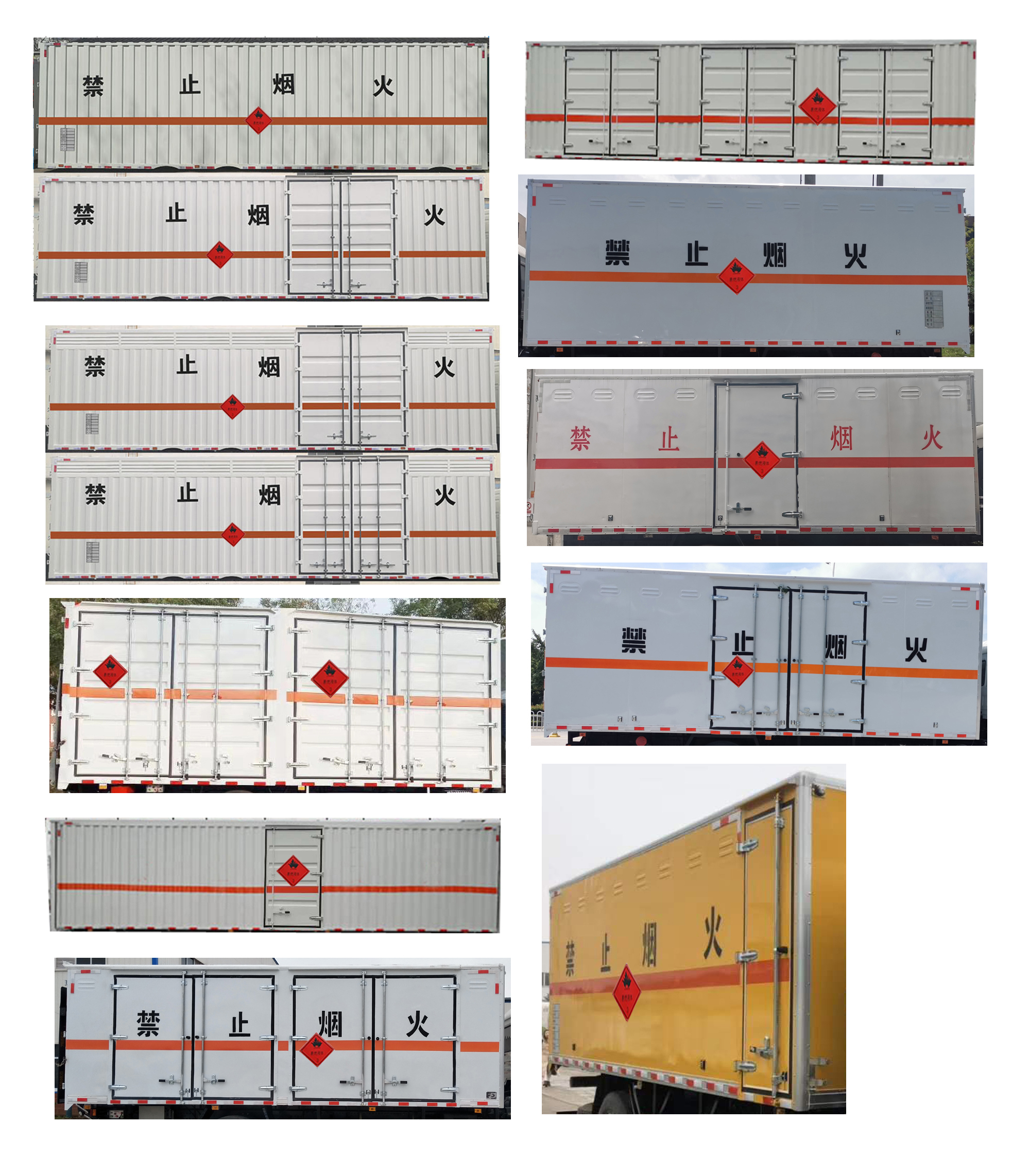 厢体配置:严格按照公告尺寸制作。外板采用优质冷轧钢板带百叶窗,内饰为导电性能良好的铝平板有透气孔,矩形骨架结构内部填充防潮阻燃挤朔板,复合加铆合工艺。厢体四周铝合金包边及包角,车厢底板铺设防静电胶皮,厢体前脸50公分高铺设防静电胶皮。后部设置对开门,可选装侧门位置,厢体内部两侧安装捆绑货物的卧环。厢体内部安装气体器及感应防器及防盗报警器。车厢一周粘贴橙色放光带,箱体粘贴 菱形告示牌,安全告示牌,危险品牌,箱体安装示廓灯(前白后红),拖地静电带。