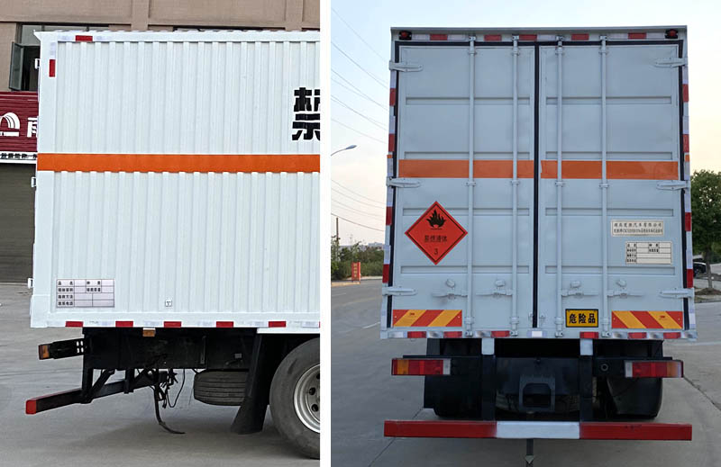 | 配置 | 1、该车适用于运输危险品。厢体顶部封闭,不可开启。运送危险品类项号:3。液压升降尾板收起状态水平长度为290mm,尾板质量为550kg。2、侧,后防护材料均为Q235,螺栓连接;后防护截面尺寸120×60mm,下边缘离地高490mm。选装后部无液压尾板。3、随底盘选装平顶驾驶室;选装驾驶室前面罩;高顶驾驶室顶部气喇叭为选装件;驾驶室前角扰流板为选装件。选装驾驶室顶部“东风商用车”企业标识。仅选用排气管前置、限速装置(限速80km/h)、前轮盘式制动及子午线轮胎的底盘;安装带卫星定位功能的行驶记录仪。ABS型号/生产厂家:ABS 8/东科克诺尔商用车制动系统(十堰)有限公司。发动机/油耗值(L/100km)对应关系为:DDi75E350-60/38.1。后轴采用空气悬架,转向轮装备轮胎爆胎应急防护装置。该车型可选装ETC车载装置.厢体侧面选装开门型式及位置,选装不带侧开门,选装瓦楞板结构;厢体侧面板选装开百叶窗。 | ||