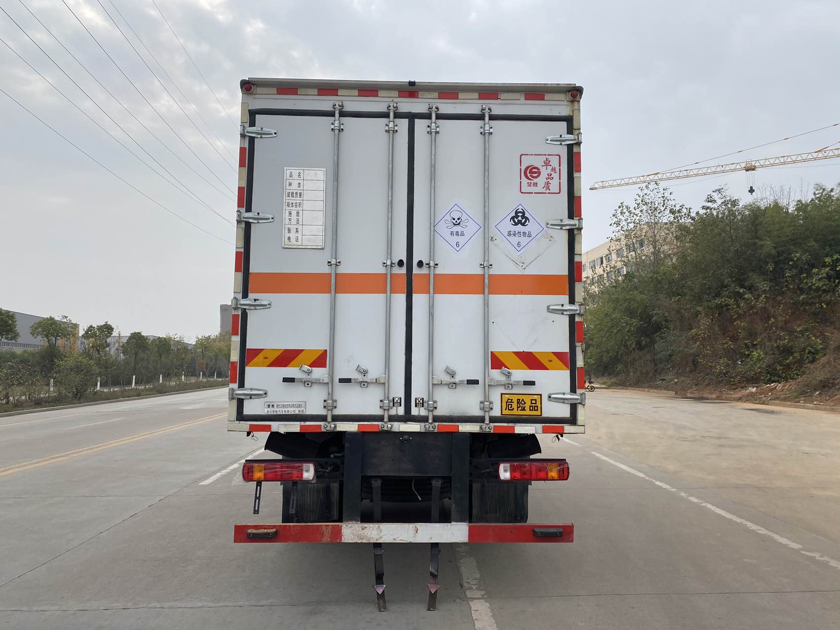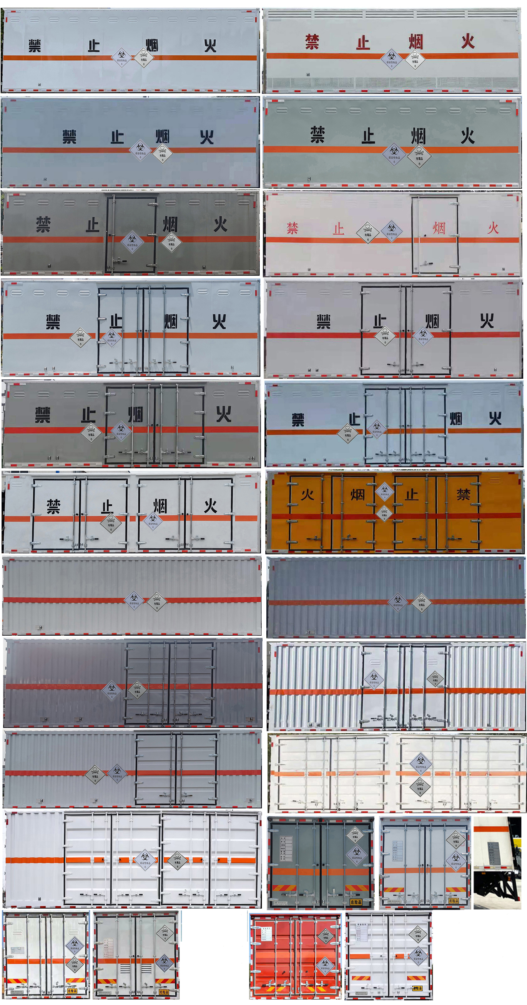 | 备注 | 该车为危险品运输车,随底盘选装驾驶室,选装后视镜,选装侧开门型式及位置,选装不开侧门,选装不同箱体外观,选装后部样式,选装后部尾灯架样式,选装后处理隔热罩,安装限速装置,限速80km/h,车厢顶部封闭且不可开启;运输独立容器(瓶)包装的货物 | ||||||||||