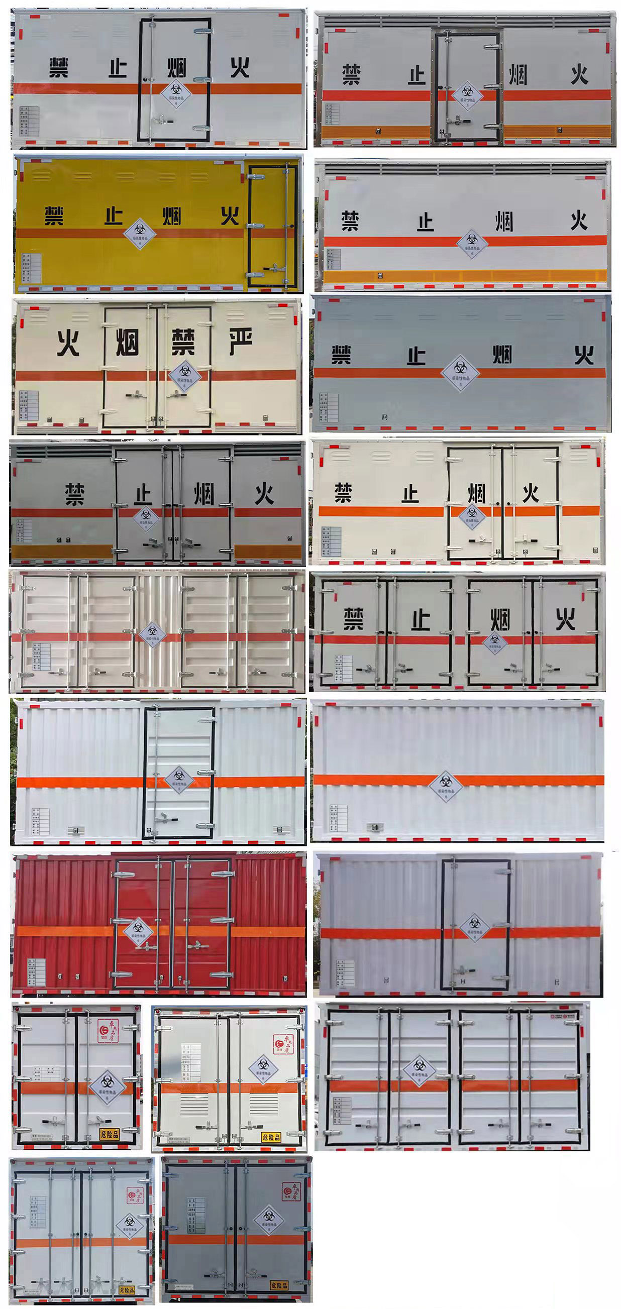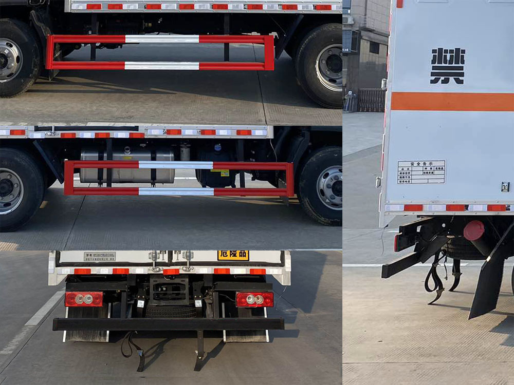 | 其它: | 1、该车适用于运输危险品。厢体顶部封闭不可开启。运输具有独立容器(瓶)包装的物品,运送危险物品类项号:6.1,6.2。2、侧,后防护材料均为Q235,螺栓连接;后防护截面尺寸100×50mm,下边缘离地高410mm。厢体侧面选装开门型式及位置,选装不带侧开门,选装瓦楞板结构;选装百叶窗。3、随底盘选装排半驾驶室。仅选用排气管前置、限速装置(限速80km/h)、前轮盘式制动及子午线轮胎的底盘;转向轮装备轮胎爆胎应急防护装置。安装带卫星定位功能的行驶记录仪。ABS系统型号:ABS-VI.E;生产企业:广州瑞立科密汽车电子股份有限公司;ABS系统型号:ABS-E;生产企业:威伯科汽车控制系统(中国)有限公司;ABS系统型号:ABS8.8 ECU 24V,生产企业:东科克诺尔商用车制动系统(十堰)有限公司;发动机/油耗值(L/100km)对应关系为:CY4SK261/16.09,D30TCIF1/16.19,F2.8NS6B156/15.39,F3.8NS6B156/14.90。可选装ETC车载装置。 | ||