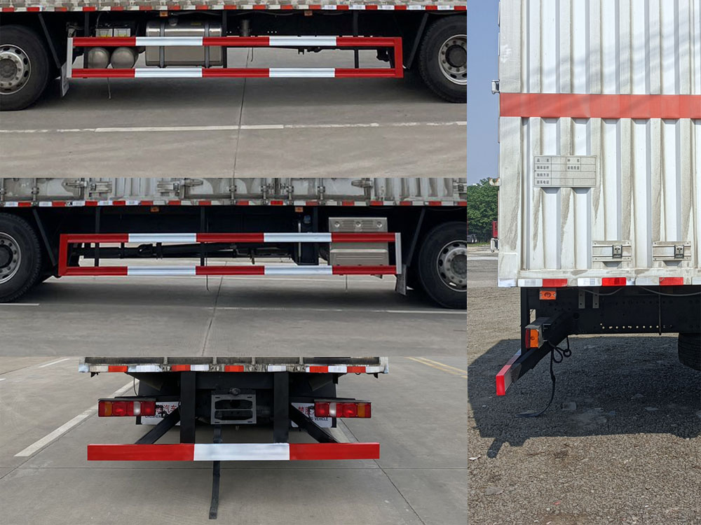 | 其它: | 1、该车为危险品运输车.运输具有独立容器(瓶)包装的易燃液体物品.运送危险物品类项号:3类.厢体顶部封闭不可开启.2、侧、后防护材料均为Q235,焊接;后防护截面尺寸(mm)120×50,下边缘离地高490mm。厢体侧面选装开门型式及位置,选装不带侧开门,选装货厢平面或瓦楞结构;厢体侧面选装开百叶窗,选装后部样式。3、仅选用1800+5600mm轴距,仅选用排气管前置、限速装置(限速80km/h)、前轮盘式制动及子午线轮胎的底盘,转向轮安装轮胎爆胎应急防护装置,后轴采用空气悬架,安装带有卫星定位功能的行驶记录仪,随底盘选装驾驶室,选装前部灯具,选装ETC。EBS型号/厂家:EBS3/威伯科(上海)管理有限公司。发动机/油耗值(L/100km)对应关系为:MC07H.35-60/32.45,MC07.31-60/32.43,MC07.27-60/32.43,MC07.25-60/32.43,WP7H270E62/32.15,WP7H245E62/32.15,WP7H220E62/32.15,WP7H320E62/32.60,WP7H300E62/32.60。 | ||