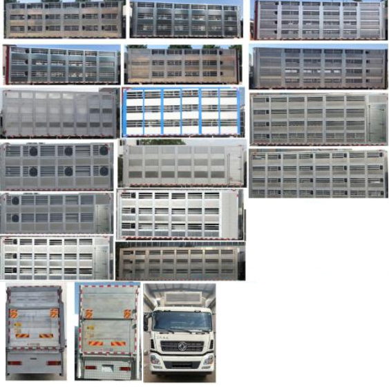 | 配置 | 该车专用装置为箱体,主要用于畜禽运输。车厢底板**顶部高度2560mm。尾板收起状态水平长度为250mm,尾板质量为450kg。侧防护材料为铝合金,螺栓连接,后防护材料为Q235,螺栓连接,断面尺寸(mm):120×100,下缘离地高500mm。安装有具有卫星定位功能的行驶记录仪。随底盘选装驾驶室,选装制冷机,选装箱体前部不带设备舱样式,选装多层及多隔舱样式,选装不同外观。ABS系统**器型号/生产企业:ABS 8/东科克诺尔商用车制动系统(十堰)有限公司,ABS-E 4S/4M/威伯科汽车**系统(**)有限公司。发动机/油耗值(L/100km)对应关系为:DDi11E465-60/37.2,DDi11E385-60/37.2,DDi11E430-60/37.2。选装ETC。 | ||