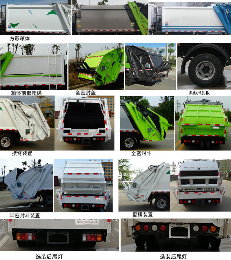 | 配置 | 1、该车主要专用装置由箱体、压缩系统组成,用于垃圾的收集与清运。该车可选装方形或弧形箱体,选装全密封盖装置,选装弧形挡泥板,选装箱体前部爬梯,选装后部工作装置。选装工作装置时,外形长(mm)/后伸(mm)/整备质量(kg)对应关系:①无上料装置: 6465/-/5280;②摆臂装置: 6625/160/5600;③全密封斗装置: 6665/200/5600;④翻桶装置,半密封斗装置: 6865/400/5600。2、侧防护采用冷弯型钢/Q235,螺栓连接;后防护由专用装置替代,下边缘离地高500mm。3、随底盘选装一种仅变化前面板、前格栅、前组合灯具的驾驶室;选装后视镜款式;选装前部标牌“4K ENGING/NJR/NHR/NKR/100P”。ABS型号/生产企业对应关系为:APG3550500A/浙江亚太机电股份有限公司,CM4YL/广州瑞立科密汽车电子股份有限公司;CM4XL-4S/4M/广州瑞立科密汽车电子股份有限公司;4、发动机4KH1CN6LB的油耗值为15.9L/100Km。 | ||