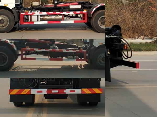 | 配置 | 1、该车主要用于垃圾收集和清运,主要专用装置为勾臂。整车外形长/轴距(mm)对应关系为: 6750/4000,7250/4500,7450/4700。仅采用轴距(mm):4000,4500,4700。2、侧,后防护材料均为Q235,侧防护螺栓连接;后防护焊接,后防护截面尺寸120×60mm,下边缘离地高450mm。3、随底盘选装前围和灯具,选装宽体保险杠,脚踏板。安装带有卫星定位装置的行驶记录仪。ABS系统生产厂家:长春瑞立科密汽车电子有限公司,型号:CM4XL。发动机与油耗值对应关系为(L/100Km):CA4DK1-22E6/25.6,CA4DK1-18E6/25.6,CA6DH1-24E6/26.92,CA6DH1-22E6/26.92。 | ||
