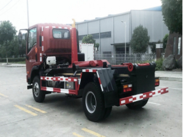★勾臂垃圾车的系统由拉臂回路﹑滑臂回路、车厢回路、锁紧回路和支撑回路组成,集装载、运输、自卸于一身,无需**设备。