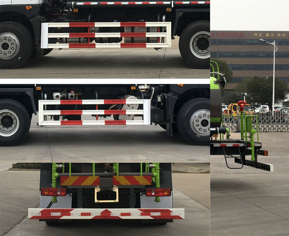 | 配置 | 该车用于路面洒水及园林绿化,主要专用装置为喷洒总成。罐体有效容积:15.22立方米。罐体外形尺寸(长×宽×高)(mm):6500×2240×1520。侧、后防护均采用Q235,螺栓连接;后防护截面尺寸:150×80mm,下边缘离地高470mm。随底盘选装驾驶室,仅选用4350+1350(mm)轴距底盘。ABS**器型号/生产企业:3631010-C2000/东科克诺尔商用车制动系统(十堰)有限公司,J ABS/焦作博瑞克**技术有限公司。 | ||