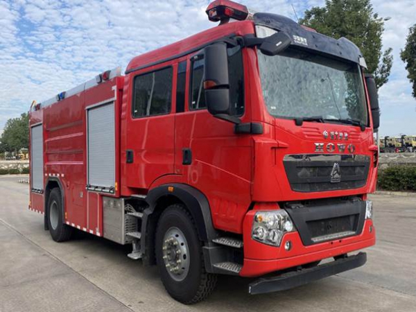 8吨泡沫消防车采用中国重汽济南卡车有限公司ZZ5207TXFV471GF5型二类汽车底盘,原装双排驾驶室,乘员2+4人,该车驾乘舒适轻便。上装采用外露式水罐,整车载液量为水5650kg;泡沫1950kg。器材箱采用高质量铝合金卷帘门。底盘取力,发动机型号为MC07.34-60,最大功率257kW,通过万向联轴器驱动安装在汽车尾部泵房里的上海雄真CB20.10/30.60型中低压消防泵,可在1.0MPa下稳定输出60L/s的流量;2.0MPa下稳定输出30L/s的流量;车顶安装成都威斯特消防器材有限责任公司生产的PL8/48型消防炮,流量48L/s,对应压力0.8MPa,最大承压1.3MPa,纯水射程60m,泡沫射程55m,可360°旋转。同时该车具有比功率大、综合性能强、操控集中简便等特点。