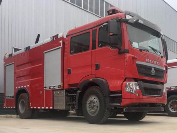 8吨消防车采用中国重汽济南卡车有限公司ZZ5207TXFV471GF5型二类汽车底盘,原装双排驾驶室,乘员2+4人,该车驾乘舒适轻便。上装采用外露式水罐,整车载液量为水7600kg。器材箱采用高质量铝合金卷帘门。底盘取力,发动机型号为MC07.34-60,最大功率257kW,通过万向联轴器驱动安装在汽车尾部泵房里的上海雄真CB20.10/30.60型中低压消防泵,可在1.0MPa下稳定输出60L/s的流量;2.0MPa下稳定输出30L/s的流量;车顶安装成都威斯特消防器材有限责任公司生产的PS8/60W型消防炮(水罐消防车),流量60L/s,对应压力0.8MPa,最大承压1.3MPa,射程75m,可360°旋转。同时该车具有比功率大、综合性能强、操控集中简便等特点。