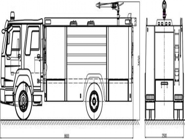 总体布置 | 整车由消防员乘员室和车身两大部分组成,车身布置采用三分体式结构,前部为器材箱,中部为水罐,后部为水泵房,罐体为平行六面体厢式容罐。 |