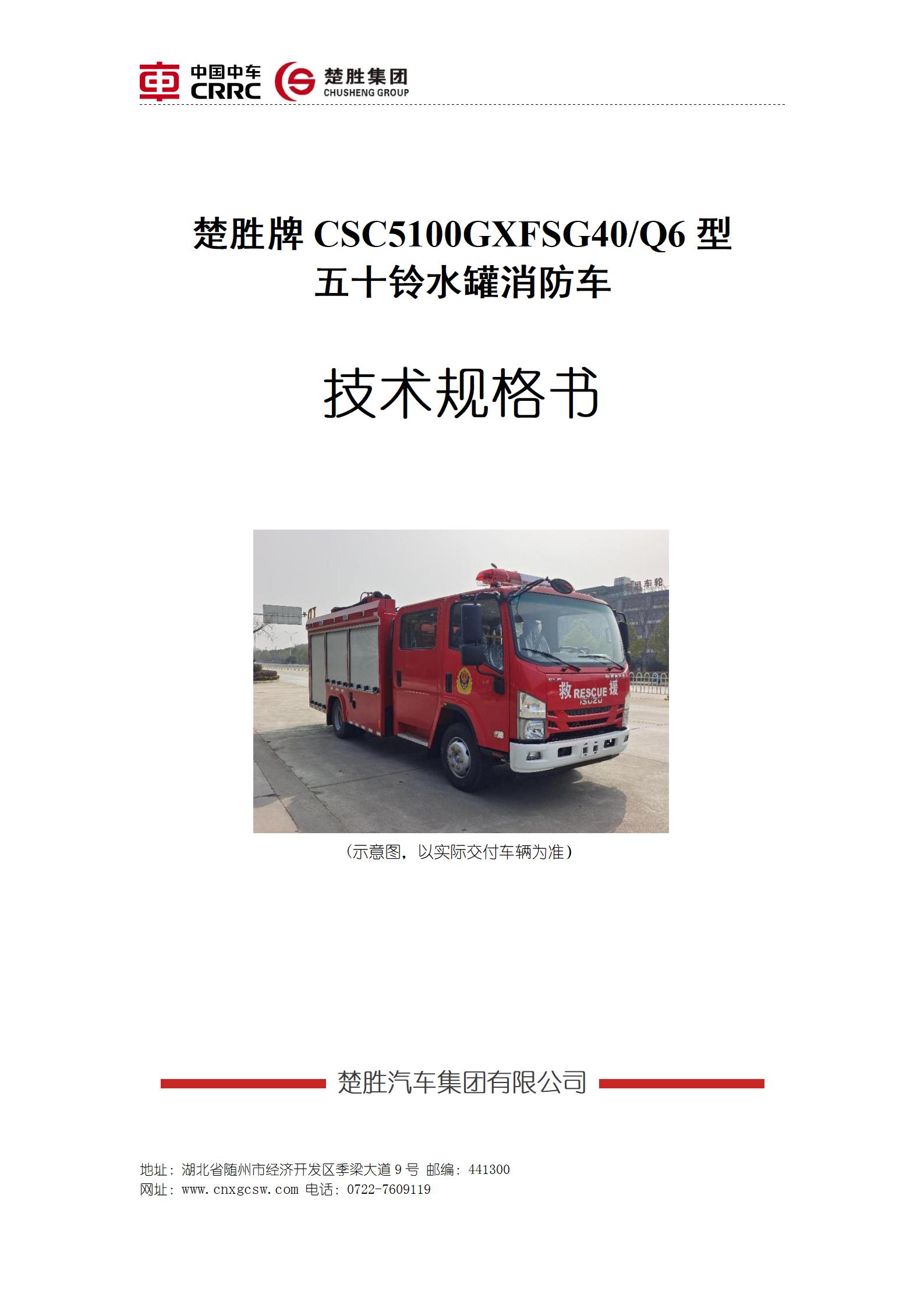 楚胜牌 CSC5100GXFSG40/06 型五十铃水罐消防车